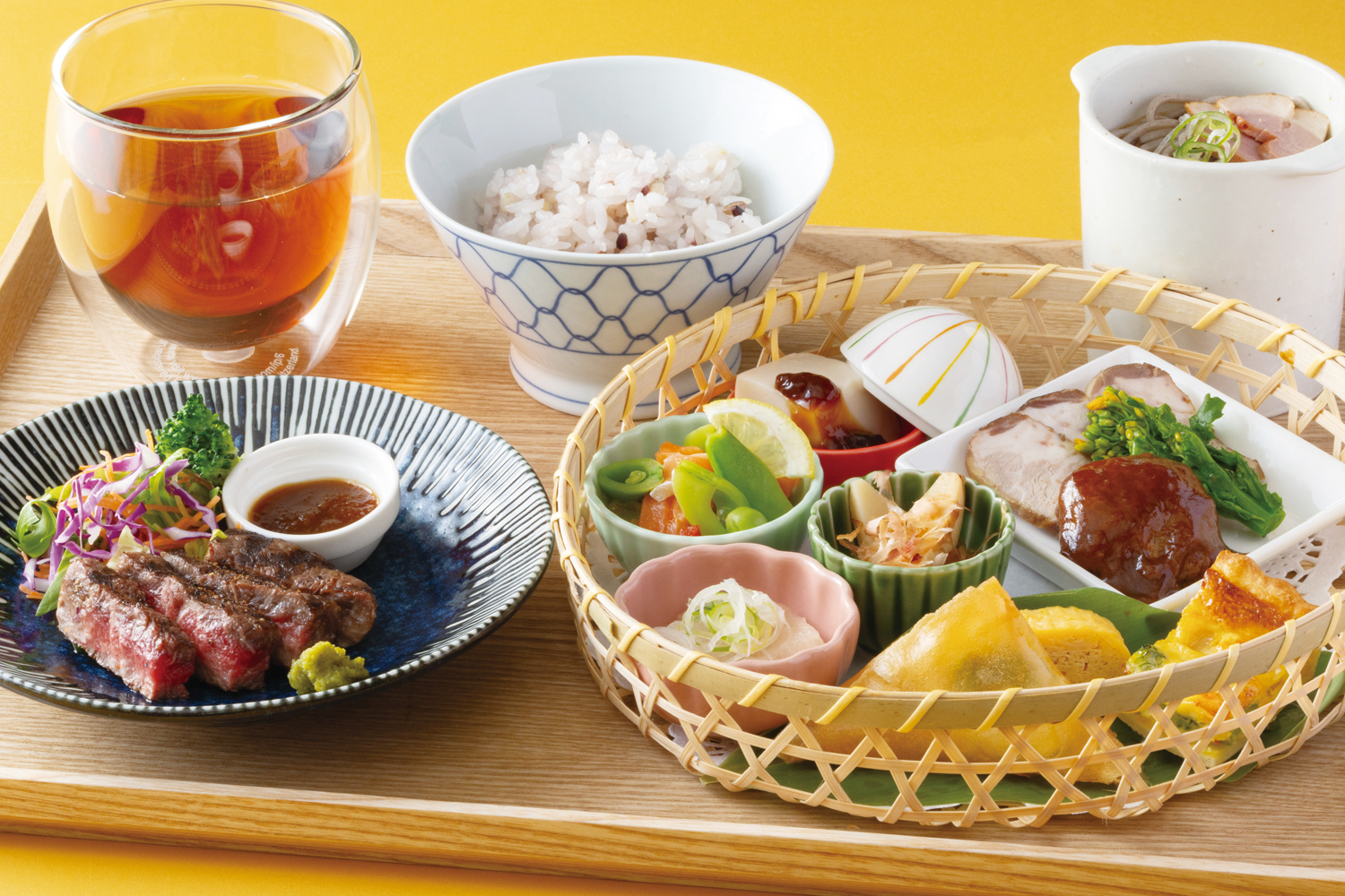 - ブリのお刺身/手作りだし巻きたまご/ミニ鴨蕎麦